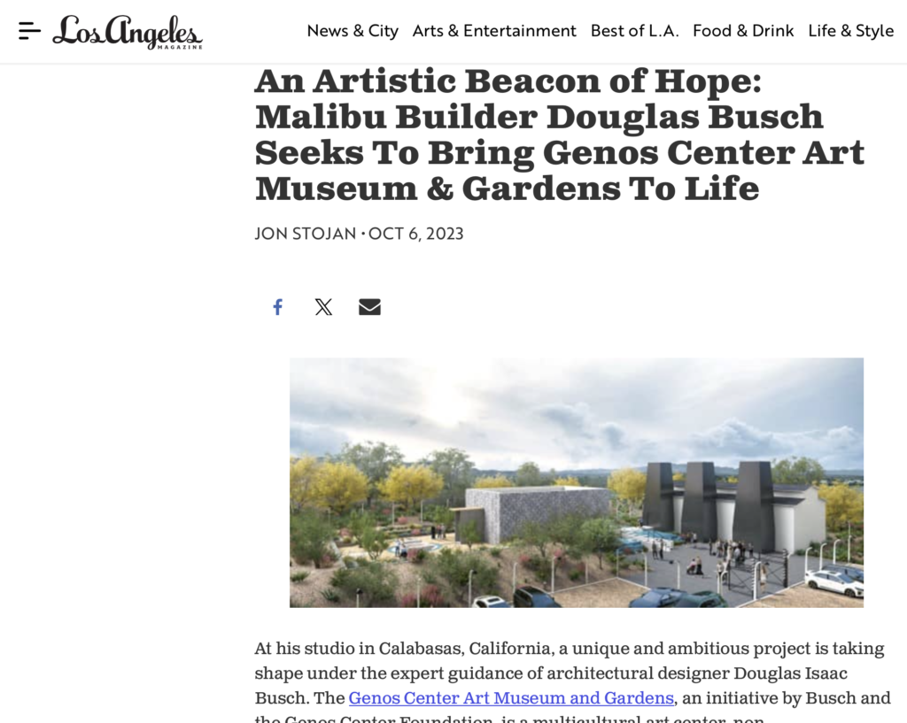 Read the full story at: An Artistic Beacon of Hope: Malibu Builder Douglas Busch Seeks To Bring Genos Center Art Museum & Gardens To Life